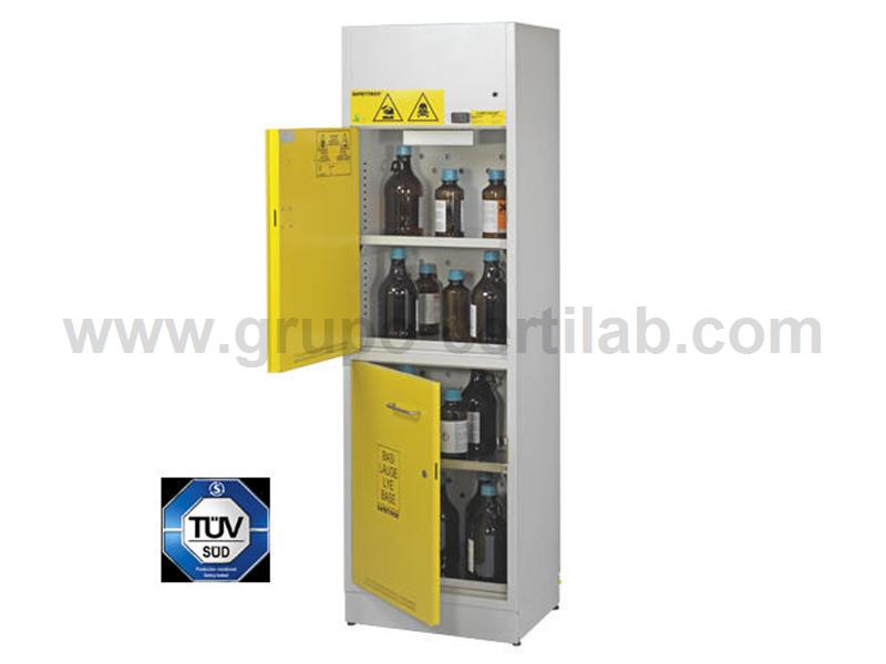 Para armazenar até 90 litros de produtos químicos, ácidos ou bases de acordo com as normas EN 61010-1, EN 14727