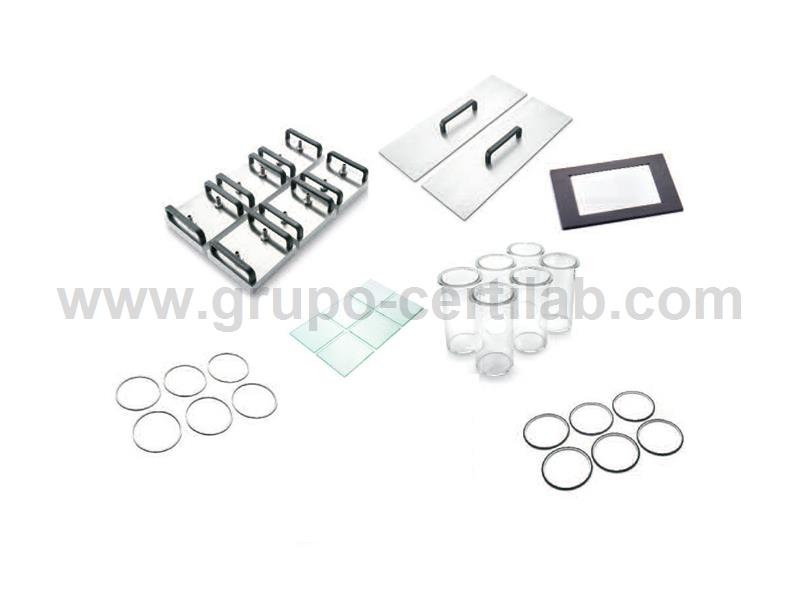 Conteúdo do Kit: 6 cooling plates, 6 glass beakers, 6 metal rings, 6 elastomer sealing rings, 6 support rings, 6 square glass plates, frame for glass plates, set of covers.
